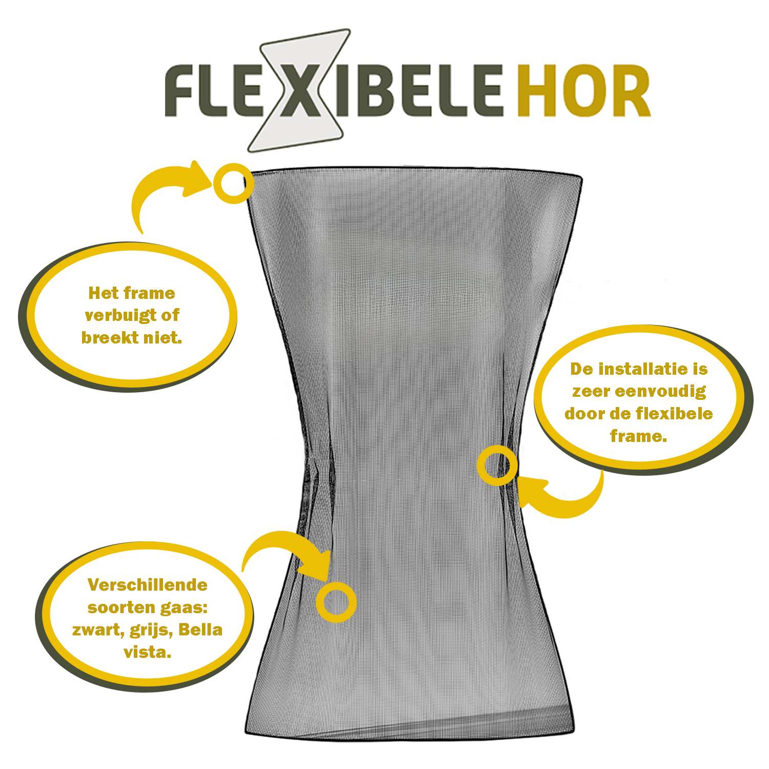 Met FlexibeleHor hoeft u niet langer te worstelen met onhandige frames en lastige hardware, omdat het flexibele frame moeiteloos in uw raamgeleider past. Geen gereedschap, geen stress, gewoon flexibiliteit. De FlexibeleHor verdwijnt bijna volledig in de raamgeleider, waardoor u van een onbelemmerd uitzicht kunt genieten en de insecten buiten houdt. Unieke insectenwering, beter wordt het niet!